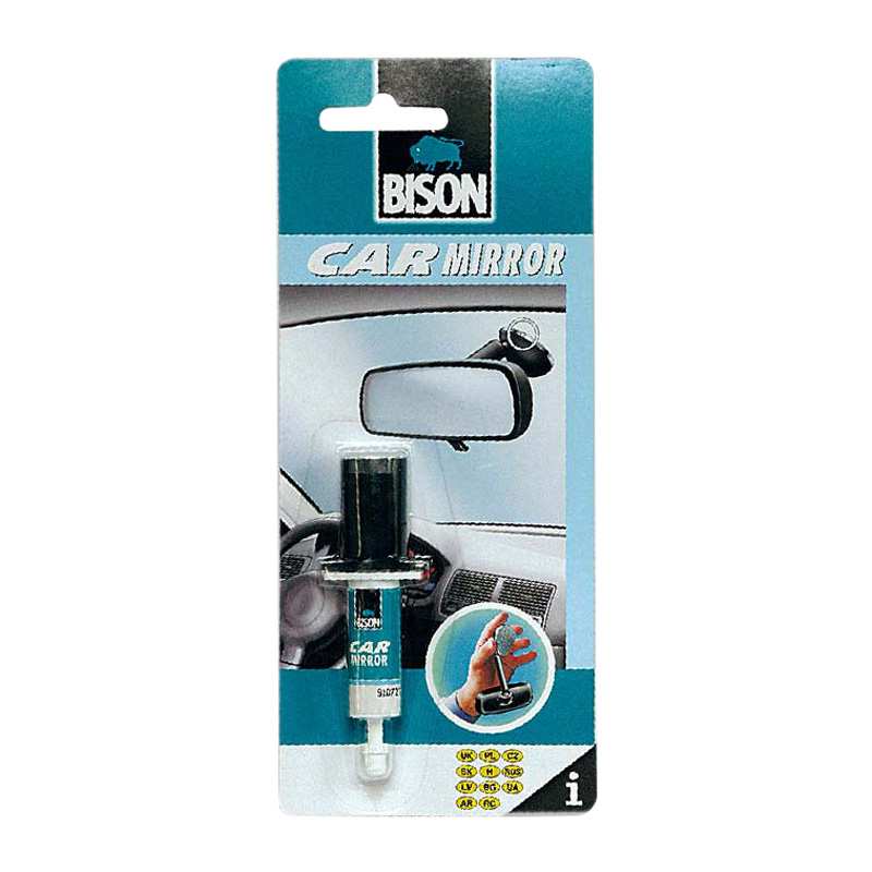 Лепило за автоогледала Car Mirror на марката BISON. Представлява специално анаеробно лепило. Предназначено за фиксиране на огледалото за обратно виждане на предното стъкло на автомобила.