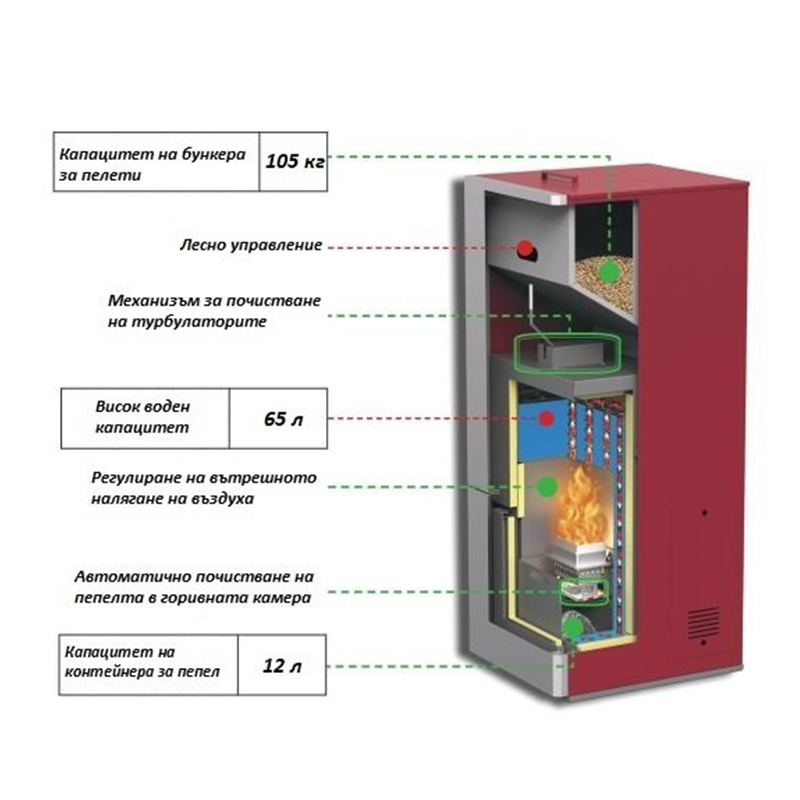 SBN AUTO 30 е специално проектиран за работа с арго-пелети. Разполага с автоматична система за почистване на горивната пота. С възможност за програмиране на работното време.