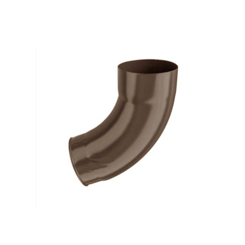 Завършващо коляно съвместимо с водосточни тръби с диаметър ф100 мм. Коляното за водосточни тръби е част от отводнителната система за покриви на KJG. Завършващото коляно е произведено от оцветена поцинкована ламарина в цвят кафяв.