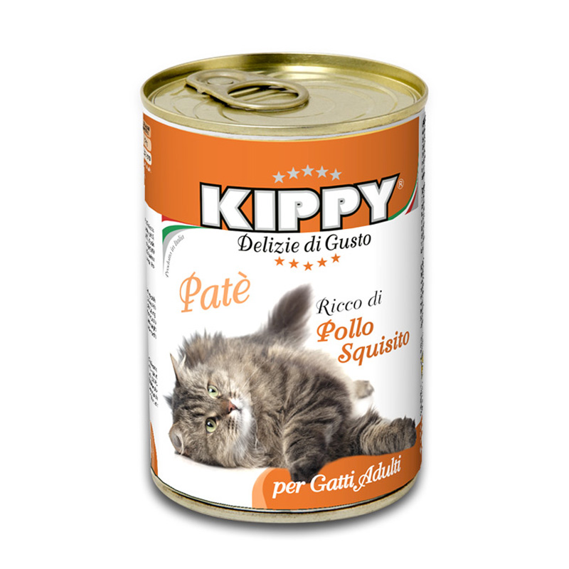 Храна за котки KIPPY пилешко месо под формата на консерва. Произход: V.B.B. S.R.L Италия. Богата на магнезий, който формира здрава мускулна система на домашните любимци.