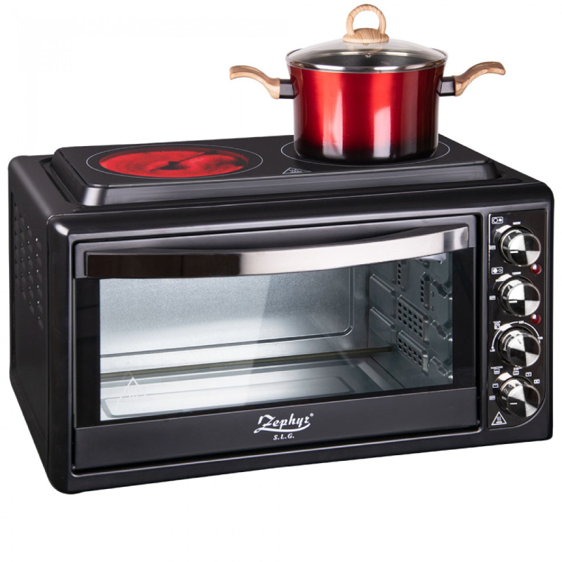 Мини готварската печка на ZEPHYR, модел Z-1441-B38IR е енергиен клас А и е снабдена с два стъклокерамични котлона - малък 800W и голям 1200W. Загравят бързо благодарение на инфрачервените им нагреватели и се управляват независимо един от друг.