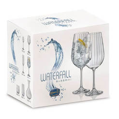 Чашите за вода на BOHEMIA ROYAL CRYSTAL, серия Waterfall са изработени от кристалиново стъкло за максимален блясък и звънкост. Предлагат се в комплект от 6 бр, като всяка от чашите е с вместимост от 550мл. Отличават се с красив дизайн благодарение на специфичната си релефна повърхност. Подходящи са за почистване в съдомиялна.