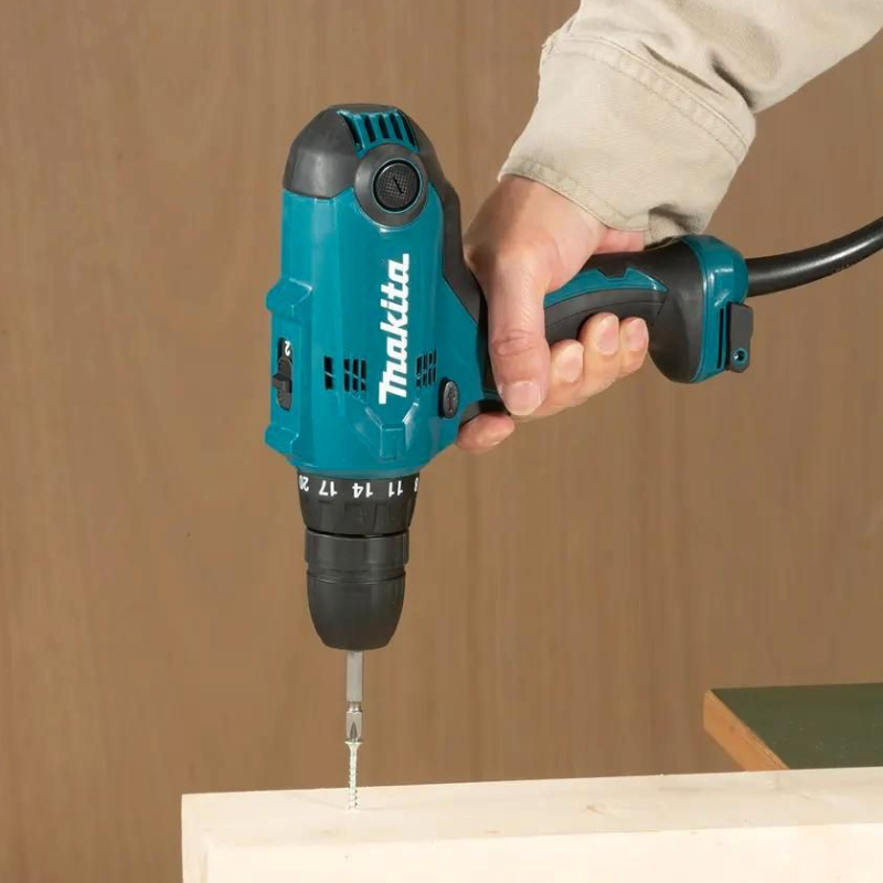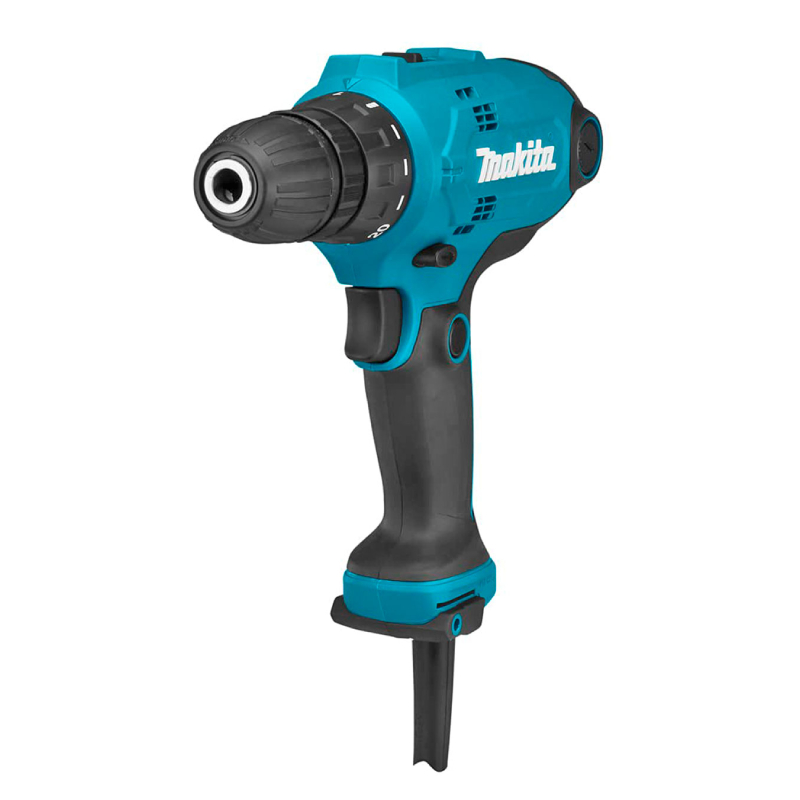 Електрическият винтоверт Makita DF0300 е мощен инструмент, предназначен за професионална употреба при пробиване и завинтване в дърво и метал. С консумирана мощност 320 W и максимален въртящ момент до 56 Nm, той предлага достатъчна сила за различни приложения, от бързо пробиване в леки материали до задачи, изискващи висок въртящ момент. Две скорости позволяват на оператора да избере оптималната мощност и контрол при работа, а безключовият патронник с обхват 1-10 мм осигурява лесна и бърза смяна на свредлата и битовете.