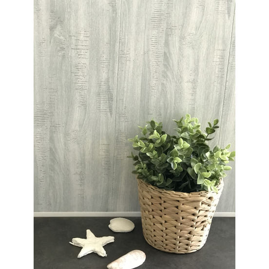 Водоустойчива PVC ламперия, модел Аспен от DECOPAN e с размери 20 см х 3.0 м и дебелина 7 мм в красив декор на избелял дъб.