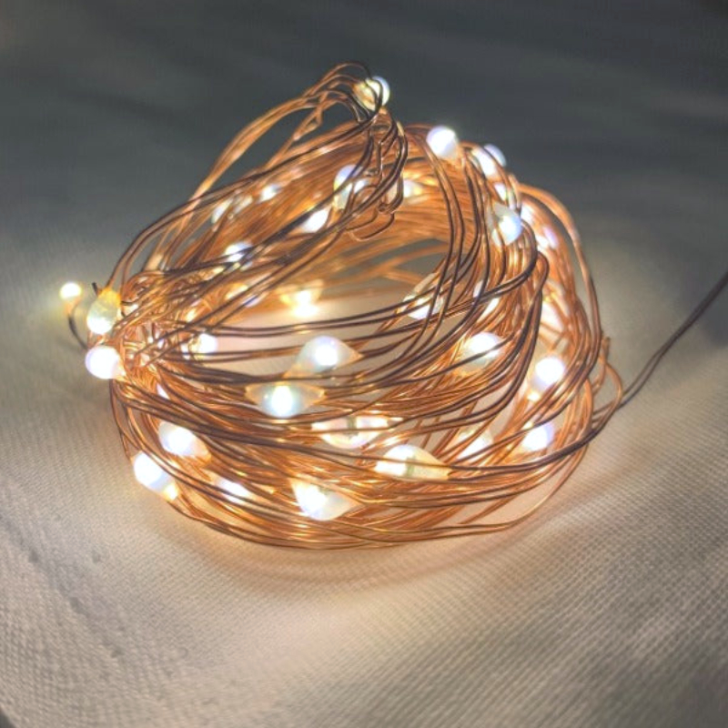 Коледен медно жилен кабел от ГАБРОВСКИ със 100 бр. LED лампички с обща мощност 1.5 W. Коледното осветление свети с цветна температура 4000 К - неутрална светлина, което засилва празничната обстановка. Дължината на лампичките е 10 м и се предлагат с адаптер. Препоръчително е да се използват на закрито. Светещият гирлянд представлява осветление, микро светодиоди лампички, монтирани на изолирана медна жица. Този вид гирлянд е идеален за финна, скрита декорация, тънката медна жица се вижда слабо, но лампичките светят ярко. Свойството на медната жица да запазва придадената форма, прави гирлянда перфектен за декорации с произволна форма.