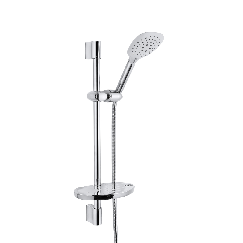 Душ системата функционира много добре дори и при ниско водно налягане. Изработен е от висококачественa ABS суровина с хромирана повърхност. Ръчният душ със своята ненатрапчива кръгла форма и бяла повърхност придава усещане за стил и допринася за комфорта в банята. Ръчният душ е с бутон за превкючване на водния поток.