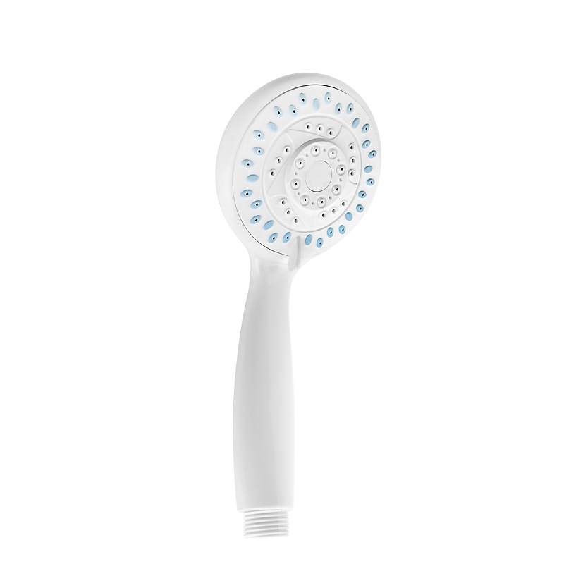 Ръчен душ за баня на турската фирма DIAMOND. Произведен е от висококачествена ABS суровина, която гарантират максимална устойчивост през целия период на експлоатация. Моделът е снабден със система за пестене на водата, както и със защита от натрупване на варовик. Продуктът е TSE и CE сертифициран, което гарантира неговото качество и надеждност. Ръчният душ със своята ненатрапчива овална форма и бяла повърхност придава усещане за стил и допринася за комфорта в банята.
