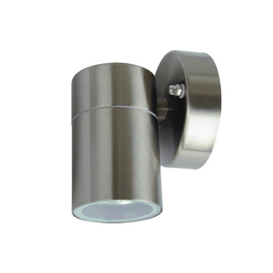 Градински аплик Grenada на марката VIVALUX. Фасадното осветително тяло е изработено от неръждаема стомана в цилиндрична форма.