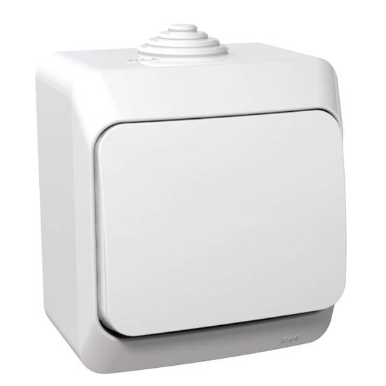 Стълбищен електрически ключ за осветление от серията Cedar Plus на марката SCHNEIDER ELECTRIC. Изработен от висококачествена пластмаса в бял цвят. Предназначен за открит монтаж. Ключът е с висока степен на защита IP44, която го прави водоустойчив и подходящ за външна употреба, както и във влажни помещения.