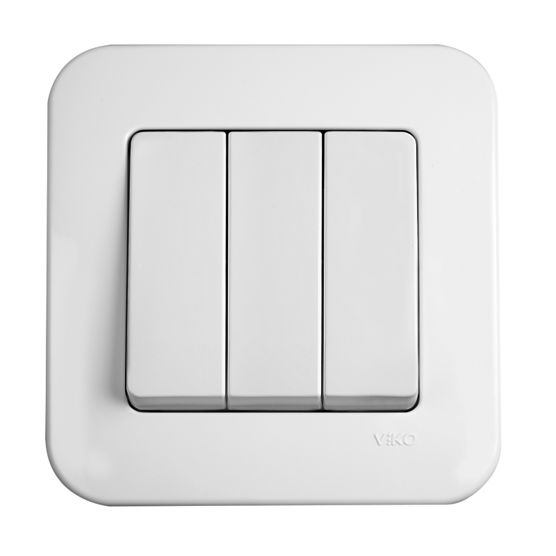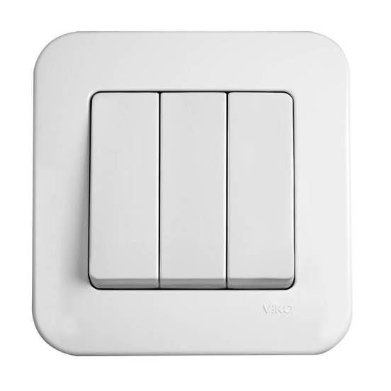 Троен електрически ключ от серията Rollina на марката VIKO BY PANASONIC. Изработен от ABS пластмаса в бял цвят. Предназначен за вграден монтаж/интериорно. Отличава се с изчистен дизайн и е подходящ за жилищни, хотелски и търговски сгради. Натоварване: 10А.