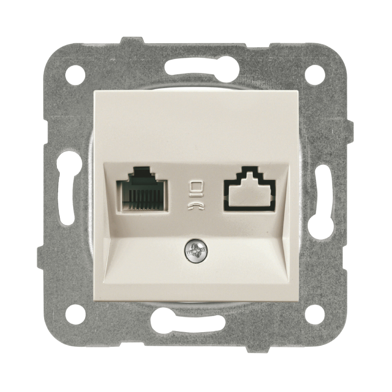 Единична компютърна розетка от серията Karre Plus на марката PANASONIC. Състои се от механизъм+капак и може да се комбинира с рамки в различни цветове от същата серия. Предназначена за скрит монтаж чрез вграждане с монтажна дълбочина 30мм.