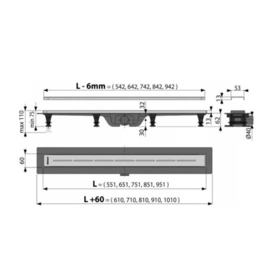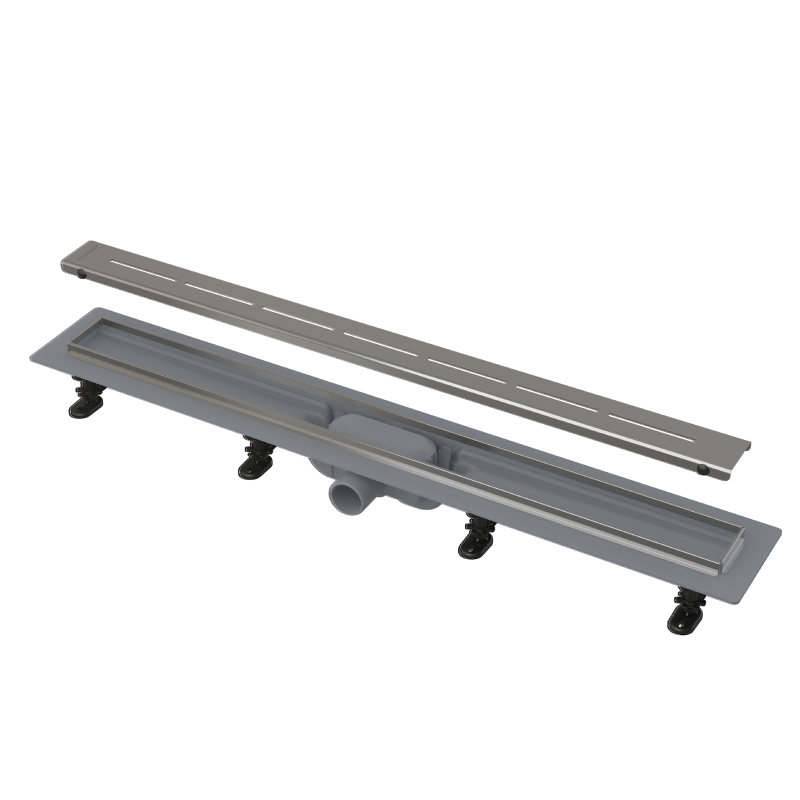 Линеен подов сифон за баня APZ18-750M на ALCAPLAST с тяло от полипропилен, изпълнено с талк, устойчиво на механични, химични и термични повреди. Предлага се в комплект с перфорирана решетка от неръждаема стомана с дължина 750мм и иноксов ръб.