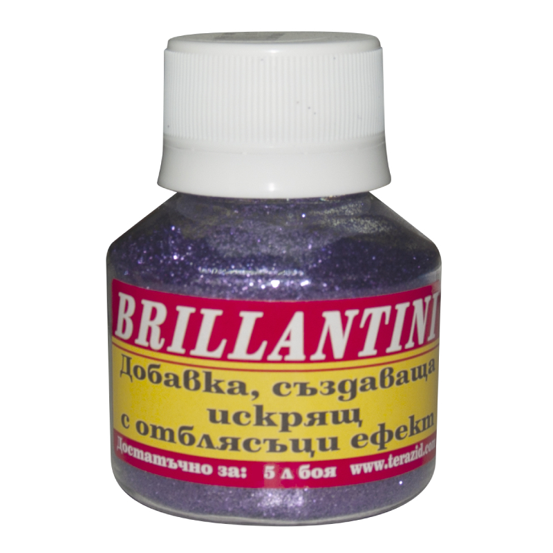 Декоративното брокатено покритие Brillantini на ТЕРАЗИД представлява цветнa добавкa с отблясъци и искрящ ефект за всякакви видове латекс и декоративни бои. Продуктът е предназначен за интериорна и екстериорна употреба. Добавката се изсипва в боята непосредствено преди нанасяне, след което се разбърква на ръка. Добавя се внимателно до постигане на желания ефект. За да се избегне пренасищане на боята се препоръчва проба преди окончателно нанасяне. Шише от 0.30 гр е достатъчно за 5 литра латекс или декоративна боя.