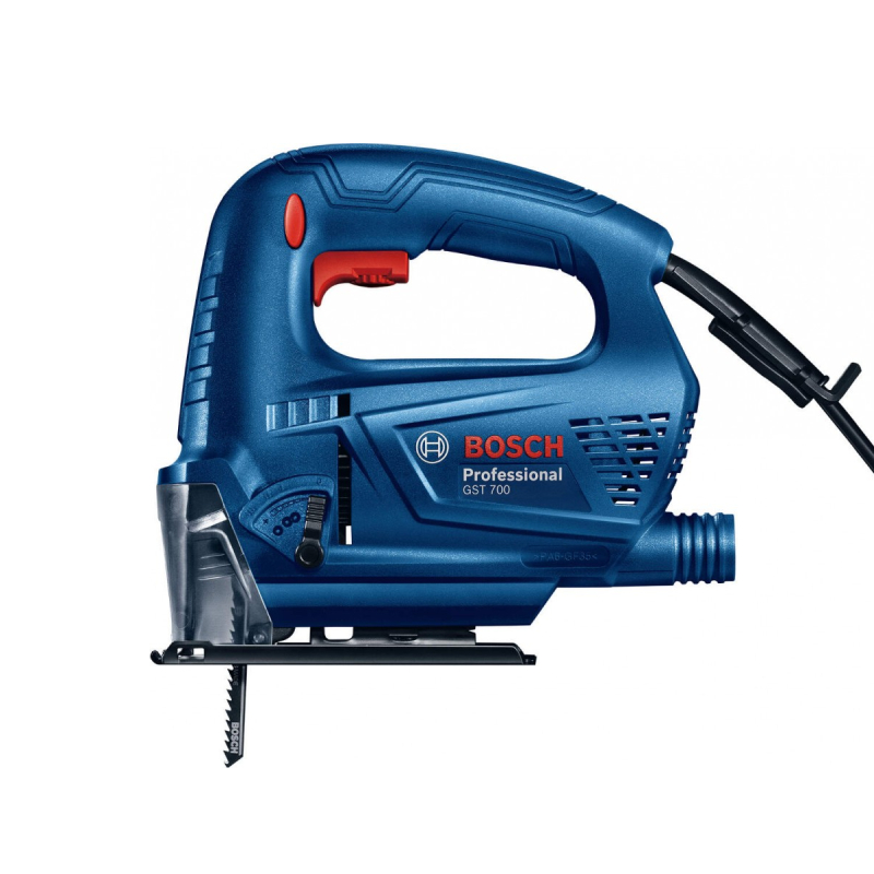 Прободен трион GST 700 Professional на марката BOSCH. Моделът гарантира бърза смяна на ножа и дава възможност за регулиране на оборотите.