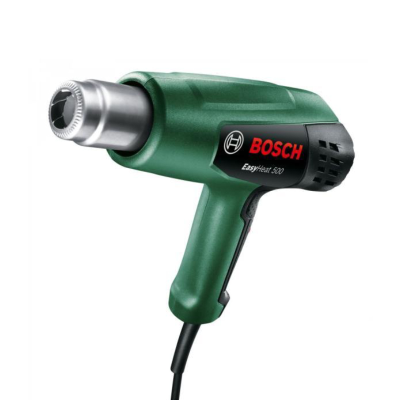 Пистолет за горещ въздух EasyHeat 500 на марката BOSCH. Лесен за използване, позволява сигурна работа. Инструментът е с лека компактна конструкция и малък размер за комфортна употреба.Снабден е с удобна зона за хващане за добро управление и две подразбиращи се икони, които ясно показват двете лесни за работа настройки. Задната част на пистолета има устойчива на плъзгане гумирана повърхност за поставяне. Различните специфични за задачата дюзи са перфектно проектирани за всяко приложение.