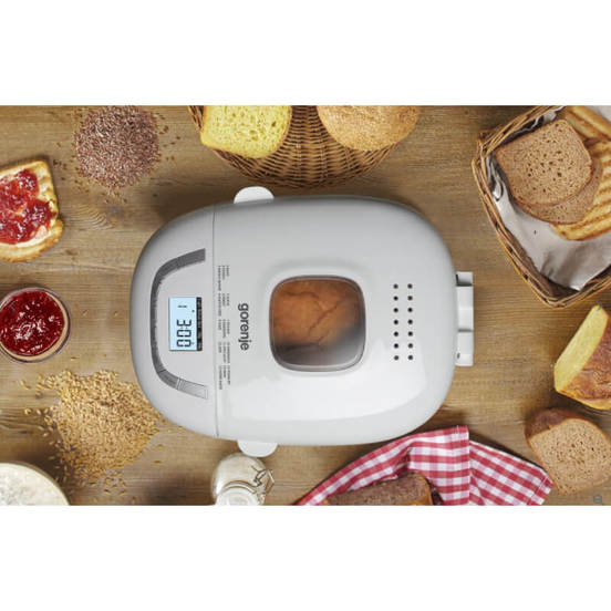 Домашната хлебопекарна BM 910 WII на GORENJE е с мощност 550W и разполага с 15 програми за приготшчне. Поради спецификите на безглутеновото брашно, което изисква по-дълго време за набухване и изпичане, уредът разполага със специална програма "БЕЗ ГЛУТЕН". За да приготвите безглутенов хляб в стандартна хлебопекарна, не се нуждаете от допълнително ръчно омесване. Времето за печене, сравнено с това при класическото брашно, ще бъде по-дълго.