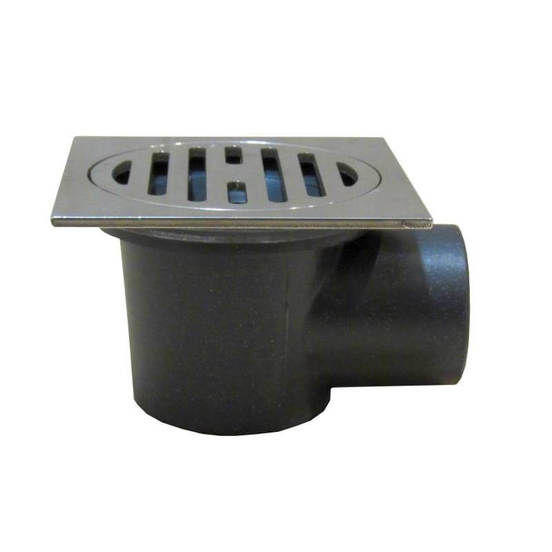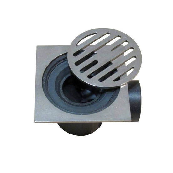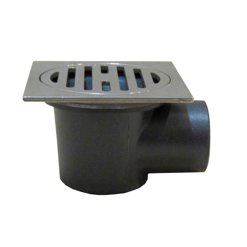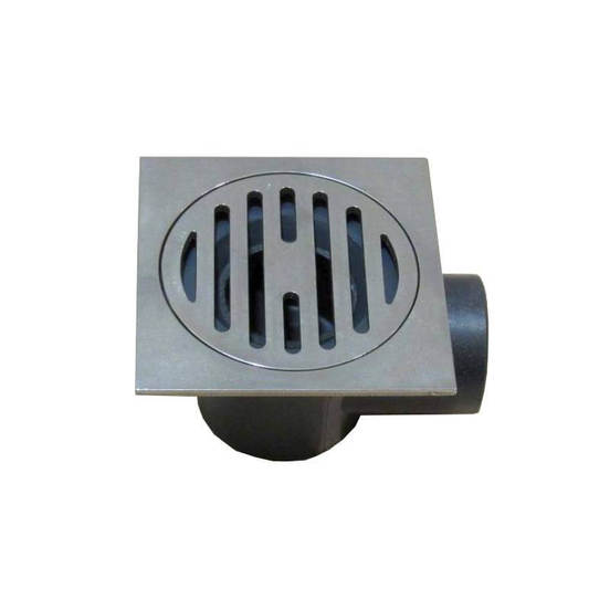Рогов сифон за баня ДРАГОЛОВИ със странично оттичане Ф50 мм и решетка от неръждаема стомана с размер 100 х 100 мм и дебелина 3 мм. Тялото на сифона е произведено от PVC. Устойчиво е на силни почистващи препарати и химикали.