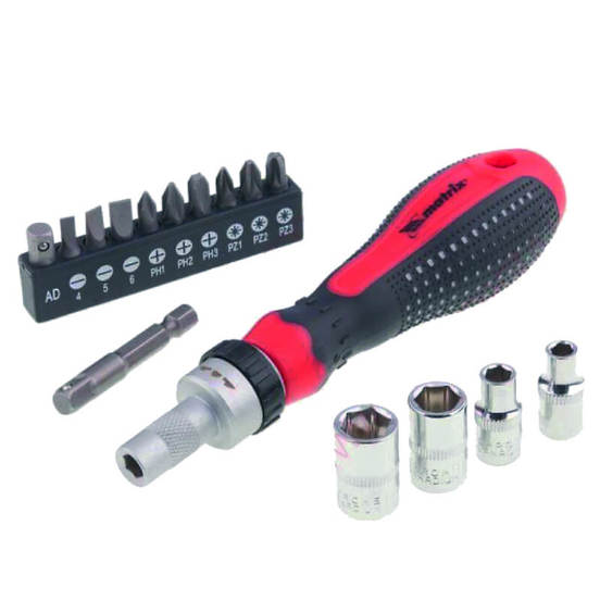 Комплект отвертка с тресчотка с включени битове и вложки - общо 16 части + адаптер от СИБРТЕХ.