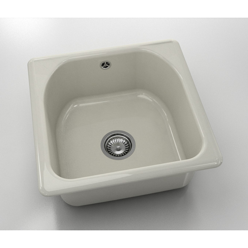 Единична кухненска мивка за вграждане FAT, изработена от полимермрамор с размер 51 х 51 см. Към комплекта е включен висококачествен италиански сифон за мивка с размер Ф90 мм.