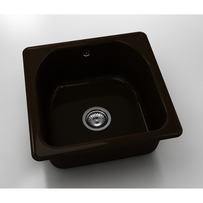 Единична кухненска мивка за вграждане FAT, изработена от полимермрамор с размер 51 х 51 см. Към комплекта е включен висококачествен италиански сифон за мивка с размер Ф90 мм.