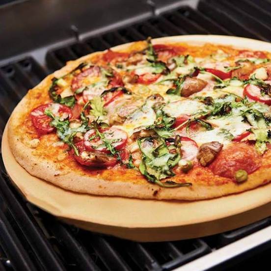 Каменна плоча (каменна подложка) за печене на пици в газово барбекю или фурна. Камъкът за печене на пици е с диаметър Ф38 см и дебелина 1.9 см.