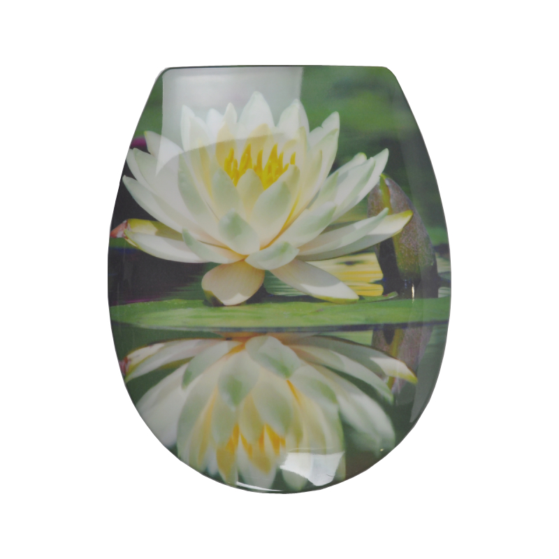 Седалкатa за тоалетна чиния на INTER CERAMIC e изработена от дуропласт с размери 373 x 455мм. Тя е с антибактериално покритие и с единичен цветен принт от горната страна на капака. Нейните заоблени форми и характерен дизайн с лилии я превръщат в стилен начин да завършите интериора на вашата тоалетна и внася свещест в помещението. Седалката за тоалетна чиния е подходяща за повечето модели тоалетни чинии, предлагани на пазара.