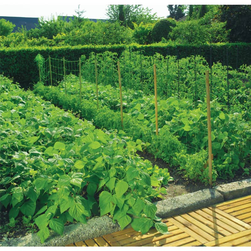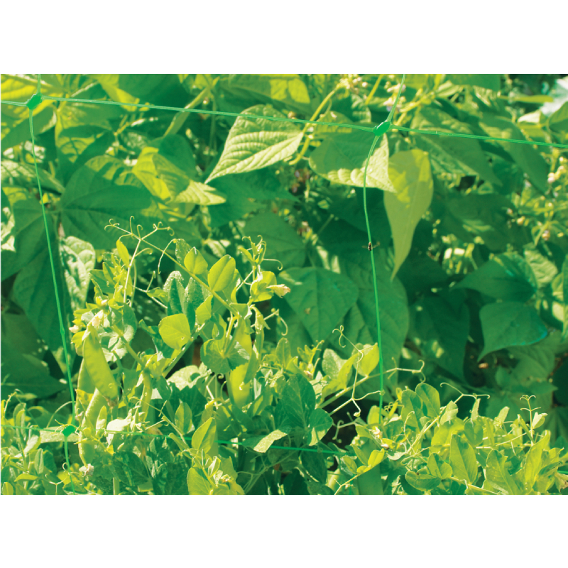 Поддържащата мрежа е с двойна нишка в двата края, като това я прави подходяща за подкрепа както на краставици и домати, така и на грах, боб и други зеленчуци.
