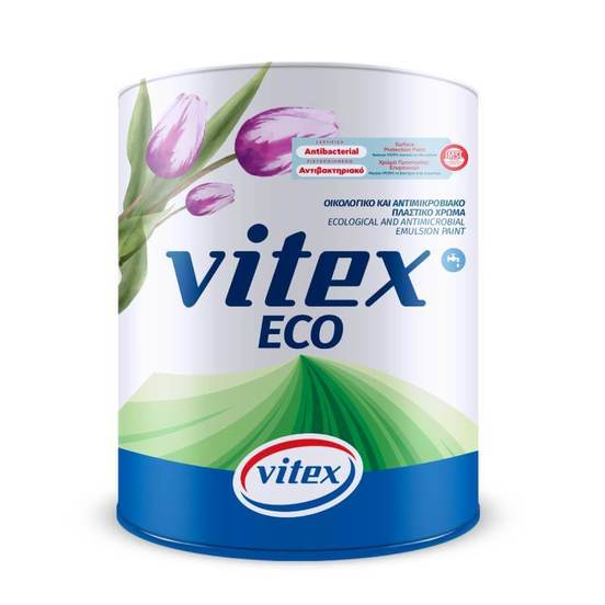 Vitex Eco на VITEX представлява сертифицирана, екологична емулсионна матова боя, с отлична белота, висока покривност и изключително нисък разход. Благодарение на своя специален състав, интериорната боя Vitex Eco предотвратява развитието на микроби върху мембраната на боята, което я прави идеална за помещения, за които се изискват асептични санитарни условия. Такива помещения могат да бъдат детски стаи, болници, родилни домове, хирургични отделения, лекарски кабинети, училища, детски градини, фитнес зали, складове за хранителни стоки, хотели и други.