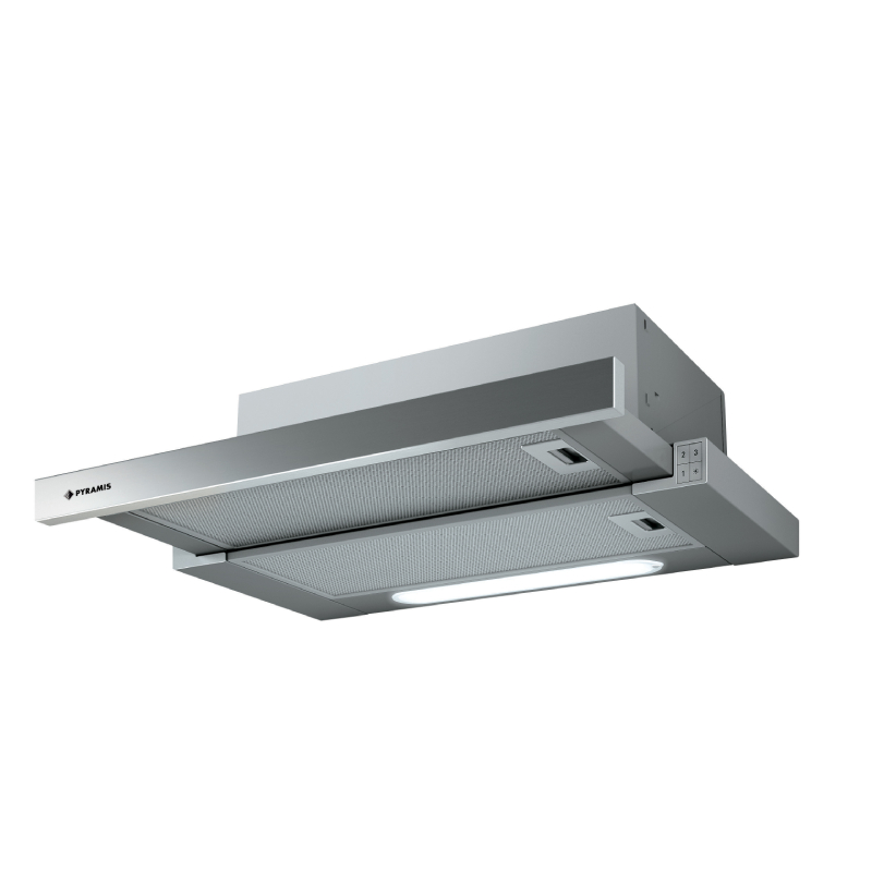 Телескопичният аспиратор за вграждане ES 3 на PYRAMIS е с мощност 1 x 115W и максимален дебит от 450куб.м/ч. Той демонстрира прецизността на италианското производство, което гарантира на клиентите ни гаранционно обслужване в продължение на 60 месеца. Моделът е с три степени на мощност и се управлява посредством Push бутони. Двата му филтъра са метални. Абсорбаторът е предназначен за монтаж на стена. Аспираторът е енергиен клас D. Ширината му е 60см, а отворът за въздуховод Ф 120мм. Снабден е с удобно LED осветление и обратна клапа.