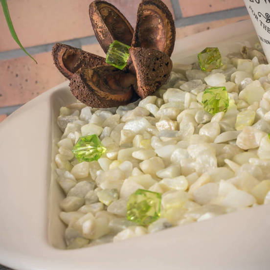 Декоративните камъчета намират голямо разнообразие от приложения. Такива например могат да бъдат както за декорация на градина, двор, саксии, така и за подови настилки. Предлагат се в опаковка от 0.5кг, като размерите на камъчетата са между 9-13мм.