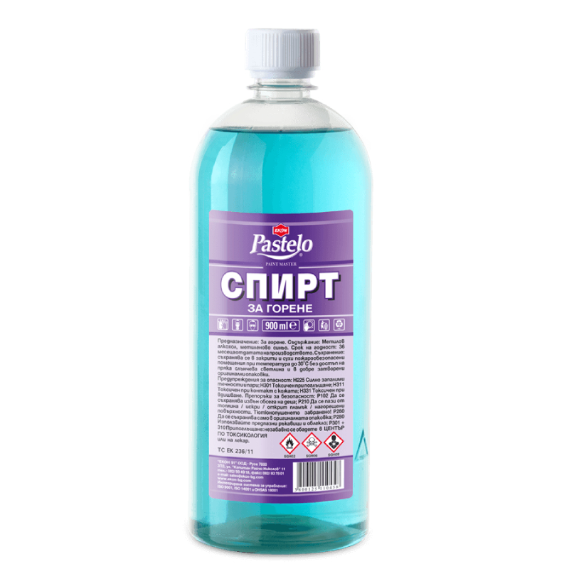 Спиртът за горене Pastelo на EKON e предназначен за горене в примуси, спиртни лампи и др. Може да се използва още и като разтворител, за обезмасляване и почистване на замърсявания от различни повърхности и за други технически цели. Предлага се в опаковка от 0.450л, а разходната норма зависи от това как и за какво ще ползва спиртът.