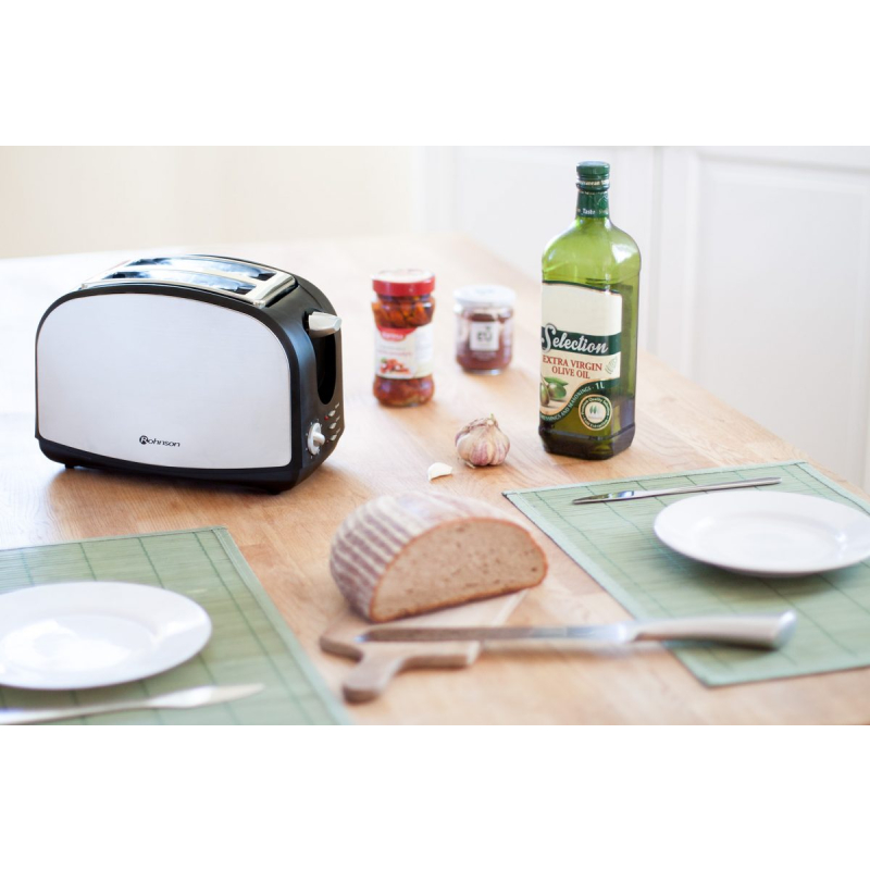 Тостер R 207 Rohnson е много удобен уред, необходим на всяко домакинство. С него ще може да приготвята хрупкави филийки за закуска на цялото семейство. Той е с механичен терморегулатор и е с два широки отвора за филийките. Тостерът е оборудван с регулатор за степента на изпичане и бутон за претопляне.