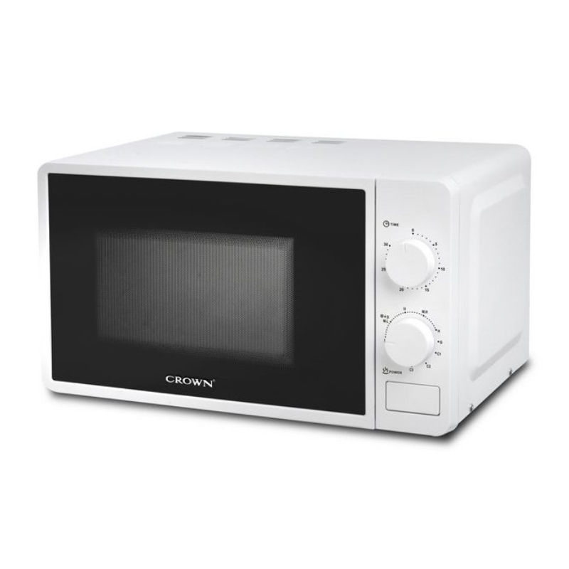 Микровълнова фурна на марката CROWN, модел CDMO-2083 е с мощност 700W и максимален обем 20 литра. Фурната има 5 степени на мощност, допълнителна функция размразяване и 30-минутен таймер за затопляне на ястията. Приключването на работа се известява със звуков сигнал.