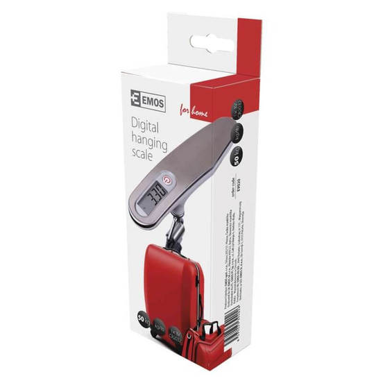 Ръчен кантар EV020, с марка EMOS е с LCD дисплей. Подходящ за претегляне на багаж, храна и други тежести. Има ТАРА функция. Изработен от ABS пластмаса и алуминий. Елегантен, стилен и ергономичен. Обхватът на измерване е от 0 до 50 килограма. Автоматично изключване след 1 минута. Батерии: 1 х 3 V CR2032 (включена в комплекта). Компактни размери: 160 х 70 х 40 мм.