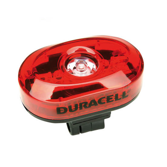 Задната светлина за велосипед на DURACELL представлява LED стоп, който работи с общо 5 бр. LED светлини със светлинен поток 3.1 lm. Стопът разполага с два режима на работа - постоянна светлина и мигане. Размерите на фара са 6.5 х 4.1 х 3.1см. Предлага се със стойка и 2 х ААА батерии готови за 49 часа работа.