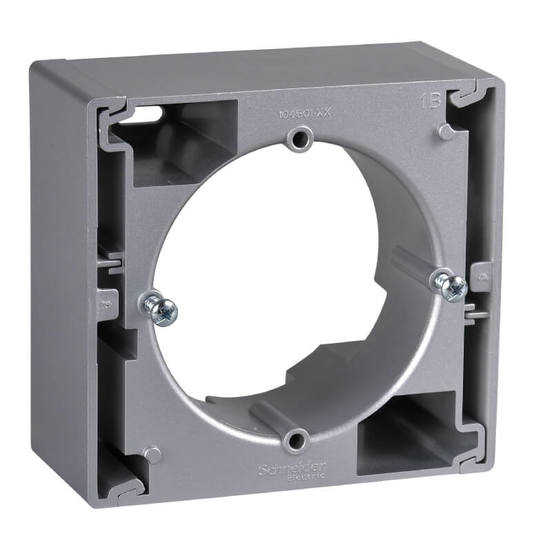 Кутията за отрик монтаж на SCHNEIDER ELECTRIC е изработен от термопластика, способна да издържа на различни видове природни явления. Серия Sedna предлага оригинална алтернатива със своите изчистени линии и елегантни цветове. Кутията е с лъскаво покритие в цвят алуминий.