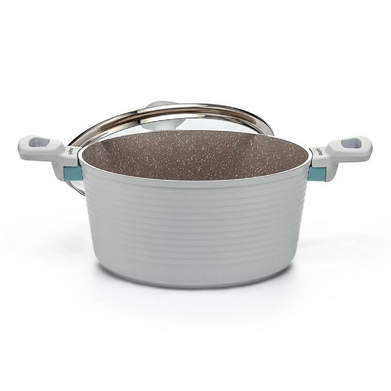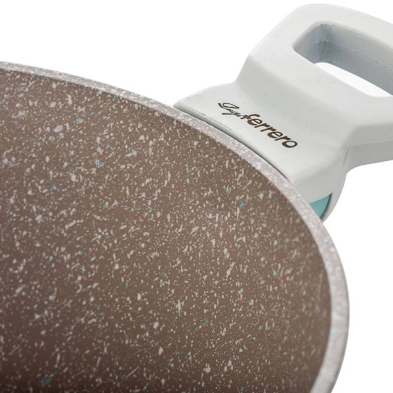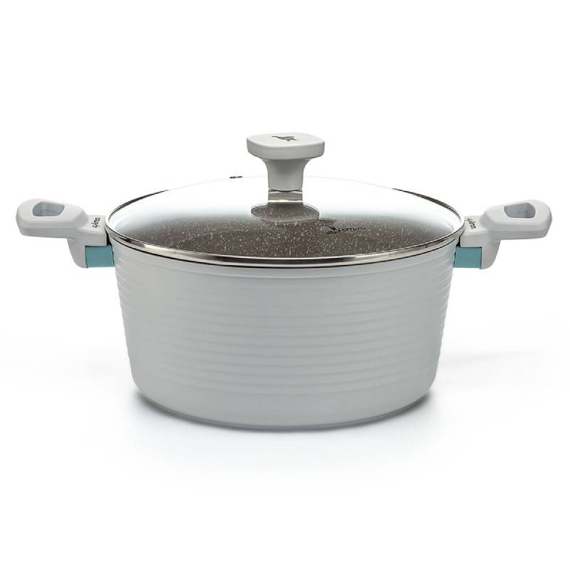 Тенджера на марката Luigi Ferrero. Тенджерата е с вместимост 4.3л и диаметър ф24см при височина 12см. Дебелината на дъното е 4мм. Съдът за готвене е изработен е от висококачествен кован алуминий и има керамично покритие за най-добра защита от залепване и загаряне на храната. Разполага със стъклен капак с отвор за пара и ръб от неръждаема стомана. Снабдена е с меки топлоустойчиви дръжки за здрав захват и максимално удобство.