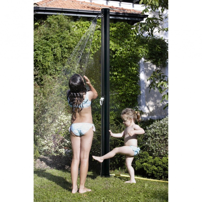 Душът затопля посредством нагряване от слънчевите лъчи водата в тялото си, преди да я използвате.