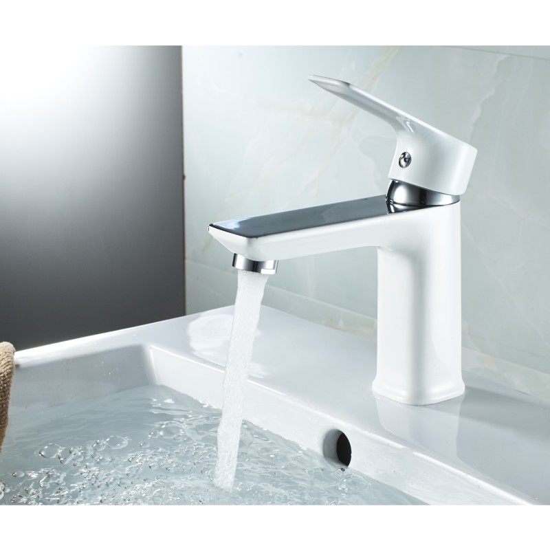 Стояща смесителна батерия за баня на INTER CERAMIC с 35мм керамичен затварящ механизъм. Смесителя за баня е едноръкохватков с индикация за топла и студена вода.