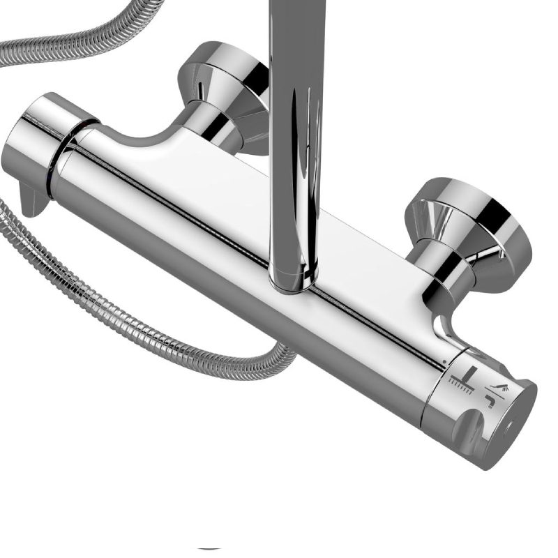 Стенната едноръкохваткова система за вана/душ от серията Idealrain+ на IDEAL STANDARD се характеризира с масивно месингово лято тяло, 40мм керамичен затварящ меганизъм с Click функция, трипътен керамичен ръчен разпределител, интегриран в тялото и скрито присъединяване без видими холендрови гайки.