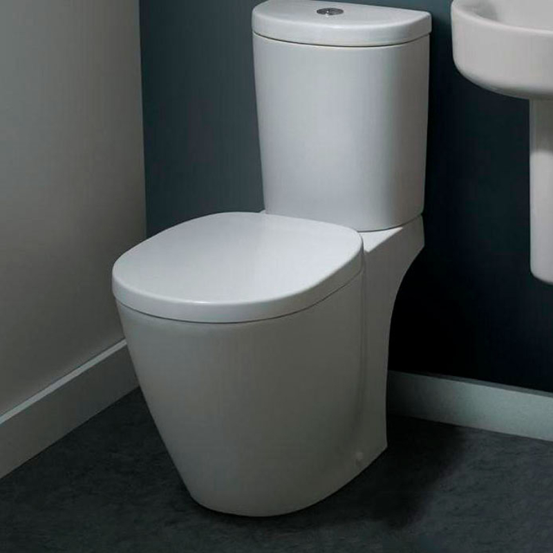 Тоалетната чиния от серия Connect Space на марката IDEAL STANDARD e предназначена за монтаж на под. Стоящата тоалетна чиния е изработена от висококачествен санитарен порцелан с висока 99.5% плътност, което означава, че изделието не може да бъде замърсено от бактерии и остава хигиенично чисто. Санитарната керамика на IDEAL STANDARD е устойчива на напрежения, негорима, негниеща, необезцветяваща се, неръждаема и устойчива на киселини и основи.