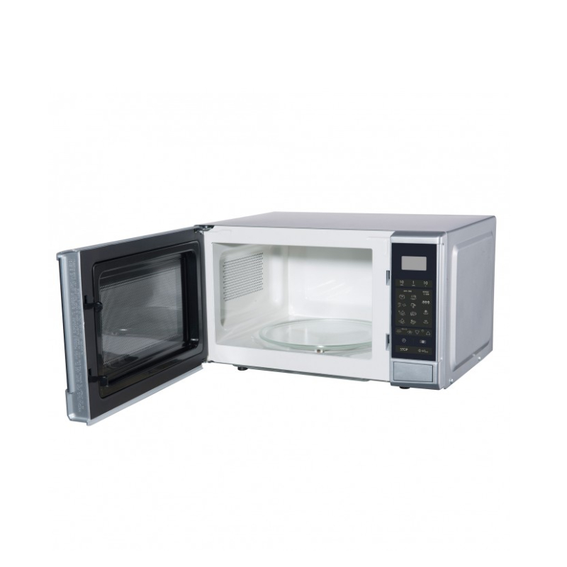 Благодарение на висококачественото покритие на работното отделение, той може да бъде почистено бързо и лесно, само с влажна кърпа. Диаметърът на чинията в работния обем е с диаметър 24см. За безопасността на вашите деца е помислено, чрез осигуряване на възможност за заключване. Предлага се в стилна комбинация на сив корпус, с преден панел в черно.