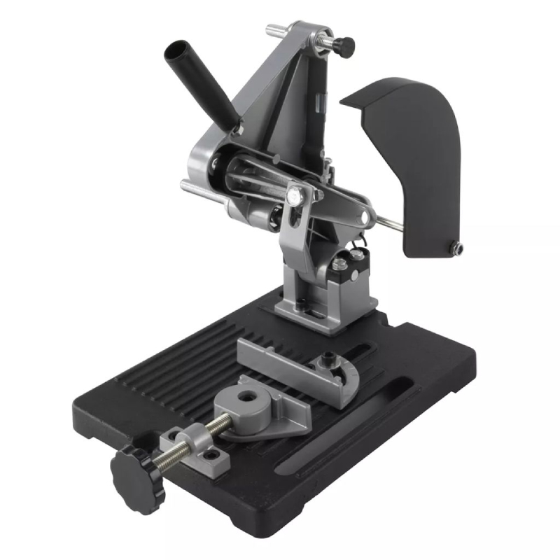 Стойката за ъглошлайф на WOLFCRAFT е с лят чугунен плот и е предназначена за машини с размер на диска Ф 115 - 125мм. Разполага с вградено закрепващо приспособление с максимална широчина на закрепване 100мм. Конструкцията е изключително здрава. Размерът на плота е 190 х 240мм, а присъединителят е М14.