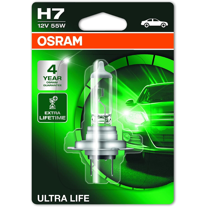 Автомобилната крушка от серия Ultra Life на марката OSRAM се характеризират с до четири пъти по-дълъг живот в сравнение със стандартните халогенни лампи и издържат до 100 000км (със среден годишен пробег от 14 259км и 60% светлина). OSRAM предоставя 4-годишна гаранция за надеждните крушки от серията Ultra Life. Модерният дизайн със сребърна капачка е идеален за използване при фарове с прозрачно стъкло. Това придава на автомобила стилен външен вид.