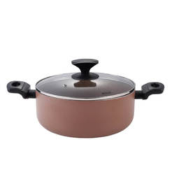 Тенджера с капак MR-2235 на марката MUHLER в цвят металик с розов оттенък. Тенджерата е изработена от висококачествен пресован алуминий за оптимална топлопроводимост. Има незалепващо покритие с мраморен ефект.