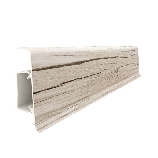 Подов перваз с кабелни канали за ламиниран паркет. Подовият перваз е на марката VOX от серия Esquero Duo № 655 с цвят Дъб Тенеси.