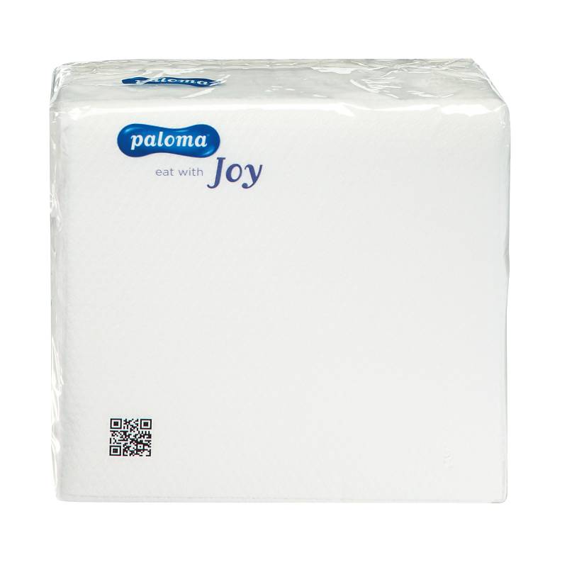 Бели салфетки за маса. Салфетките са с размери 30 х 30 см и се предлагат в пакет от 100 броя.