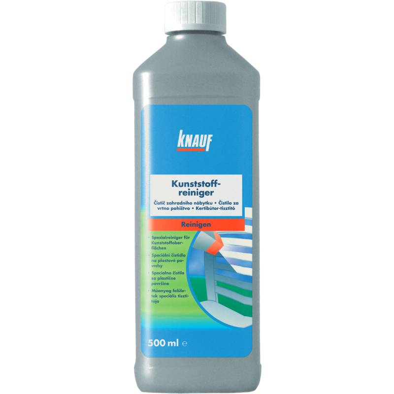 Универсалният течен препарат на немската фирма Knauf премахва всякакъв вид замърсявания от пластмасови повърхности. Предназначен е за почистване на градински мебели и други пластмасови повърхности, пластмасови врати, прозорци, щори и други. Действа мигновено дори и при по-силни и упорити замърсявания.