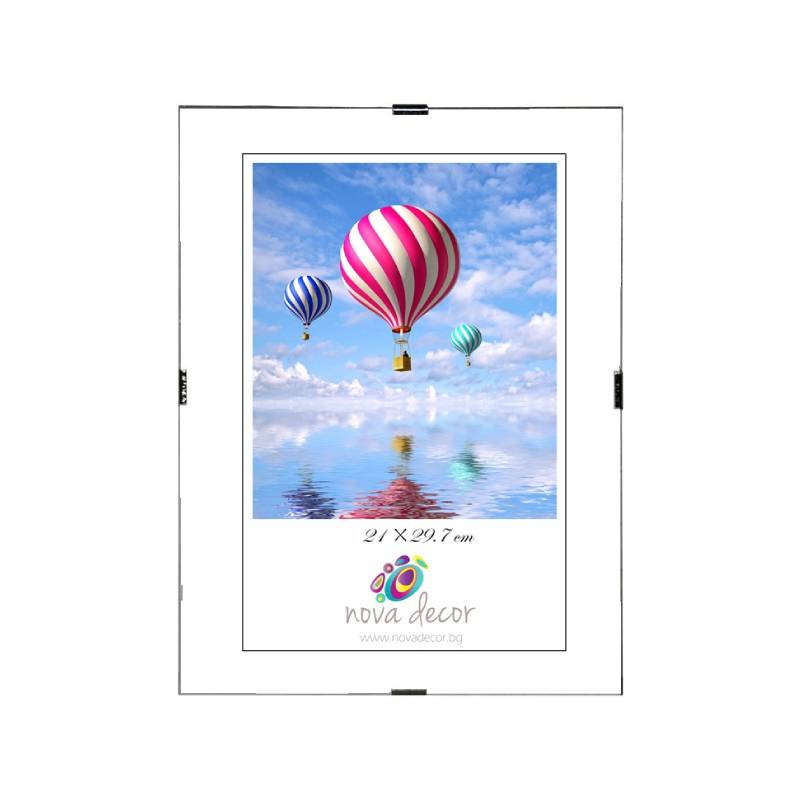 Рамка за снимка с размер А4, или 21 х 29.7 см. Рамката за снимки е изработена от стъкло. Може да се окачва на стена.