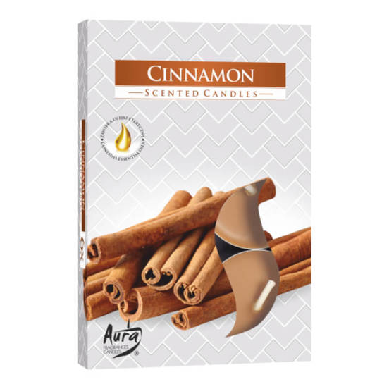 Чаените свещи на BISPOL притежават приятен, мек аромат на канела. Предлагат се в комплект от 6 бр. Ароматите са с успокояващ ефект. Помагат за намаляване на стреса и раздразнителността, при безсъние и леки депресии и са стилна декорация за всеки дом. Времето на горене на една свещ е около 4 часа.